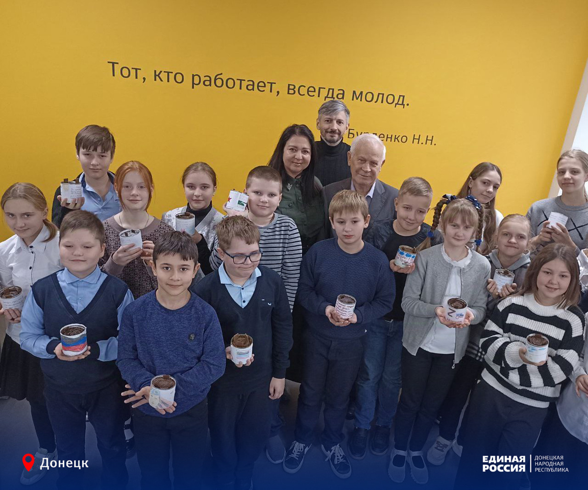 В первичном отделении партии № 199 прошла акция по изготовлению окопных свечей. Мастер-класс для учеников донецкого лицея № 5 провёл активист Единой России, учитель труда и черчения Николай Мирошников. Школьники прослушали инструктаж по изготовлению свечей и принялись за дело. Каждую свечу делали кропотливо и от души. Ребята понимают, что это не просто увлечение, а настоящая помощь Родине, что каждая свеча поможет солдатам на фронте и даже может спасти жизнь. Также Николай Яковлевич передал два экземпляра своего изобретения – мини-печки для окопных свечей. «Печь проста в применении. Накрываем «печкой» по центру зажженную свечу и на плите согреваем кипяток для чая, кофе, готовим еду; разогреваем консервы, тушенку; над печкой сушим влажные перчатки, вещи, греемся сами», – пояснил учитель. Представителям Комитета семей воинов Отечества, активисты Единой России и ОД ДР приняли письма и окопные свечи, созданные детскими руками, чтобы передать их нашим защитникам. «С приближением з