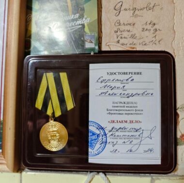 «Для меня это высокая награда! Это оценка моей деятельности именно как фронтового перевозчика. На медали изображена фура, написано СВО, сзади надпись «Фронтовые перевозчики». Фонд проделывает колоссальную работу, это очень крутые ребята! Раз в месяц на нескольких фурах они собирают гуманитарный груз со всего Татарстана и доставляют его на Донбасс. Перевозимые ими объёмы помощи просто невероятные. Я на своём авто рядом с ними, как слон и Моська… Но они меня всё же оценили как своего соратника. Это большая для меня честь», — признаётся православный доброволец СВО Мария Ефремова.