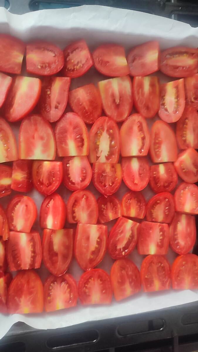 Pomodori secchi, как называют данное произведение искусства итальянцы (закуской, ей-Богу, не поворачивается язык назвать), в нашей стране стало популярно, как и многое другое, в последнее десятилетие, в связи с развитием интернета. А вот жители европейского сапога давно смекнули, что если повялить томаты, то можно ими наслаждаться круглый год. Расторопнее всех в данном вопросе оказались, как и в деле с мафией, сицилийцы, чьи женщины разрезали помидоры и сушили прямо на черепичных крышах под знойным средиземноморским солнцем. Главное преимущество вяленных помидоров над свежими, как верно заметили итальянцы, является отсутствие лишней влаги и, соответственно, обладание более концентрированным вкусом. После небольшого ликбеза, перейдем к тому, благодаря чему мы, несмотря ни на что, обожаем томаты и хотим их научиться вялить самостоятельно. Я обычно беру 3,5 кг сливок ( идеальный мясистый небольшой сорт для этого дела), хватает как раз на два противня. Из килограмм свежих томатов получ