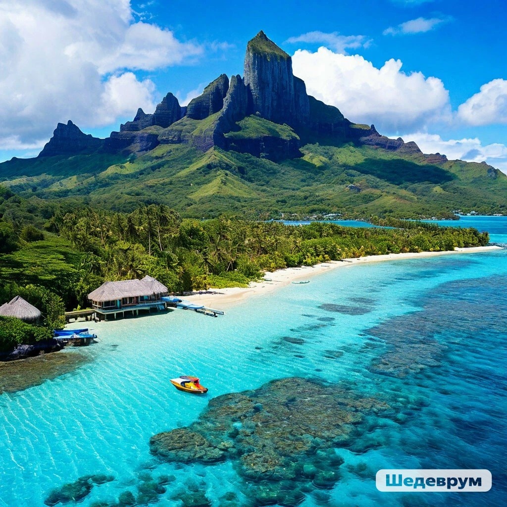 Остров Бора-Бора - это райское место, расположенное в Тихом океане. Он находится в архипелаге Туамоту в Полинезии, который является одним из самых красивых и уникальных мест на Земле. Бора-Бора – это настоящий тропический рай, где можно наслаждаться прекрасными пейзажами, прозрачной водой и мягким климатом. Остров является популярным местом для отдыха благодаря своим белоснежным пляжам, кристально чистым водам и богатой морской жизни. Одной из главных достопримечательностей Бора-Боры является его уникальная природа. Остров покрыт пышной растительностью, которая включает в себя пальмы, папоротники, орхидеи и множество других экзотических растений. Здесь можно увидеть множество видов птиц и животных, таких как морские черепахи, киты, дельфины и другие. Кроме того, на Бора-Бору можно заняться различными видами активного отдыха, такими как дайвинг, сноркелинг, каякинг и рыбалка. Также на острове есть несколько ресторанов и баров, где можно попробовать местную кухню и напитки. Однако,