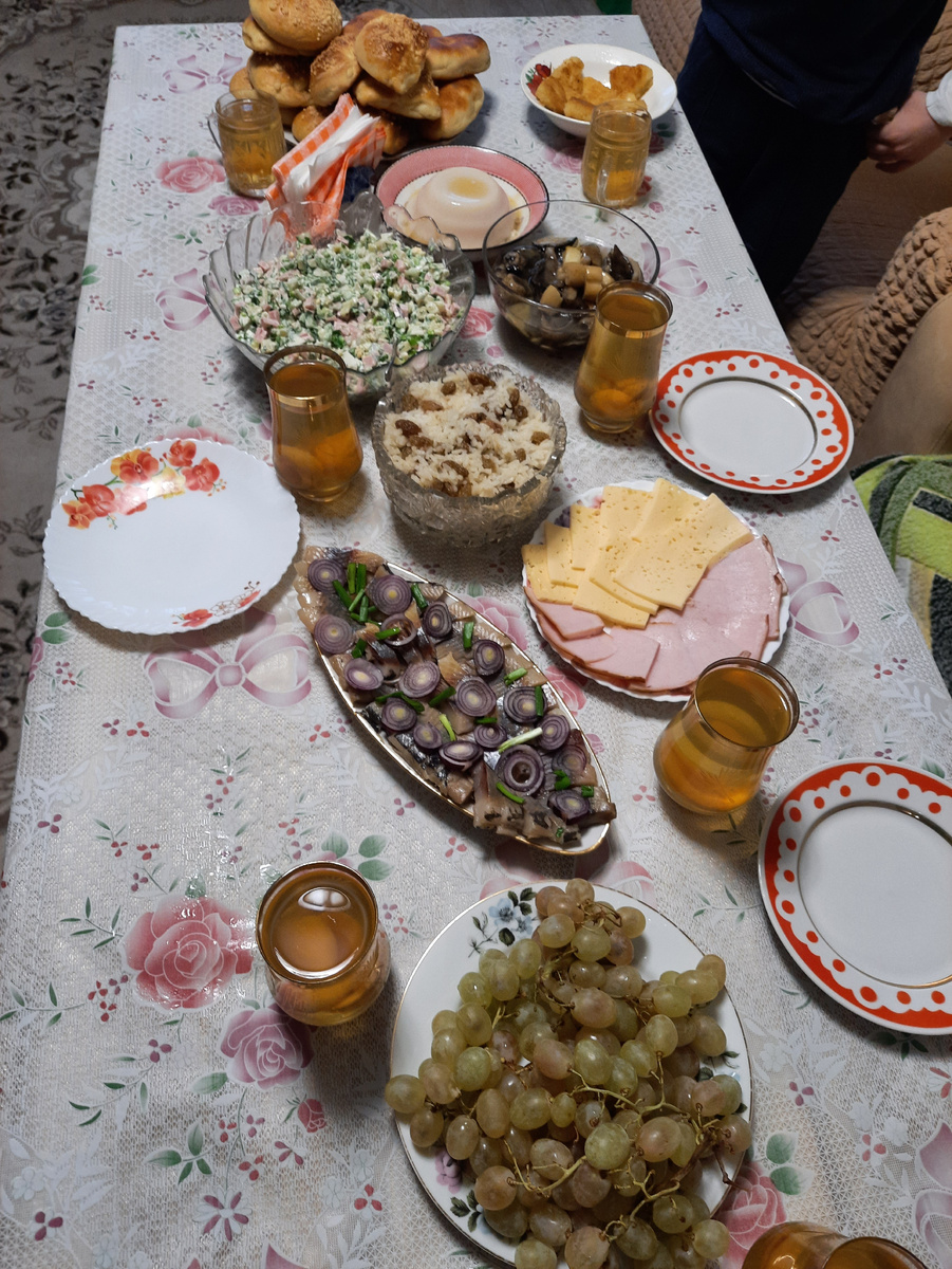 Доброго времени суток, друзья! Выпала из Дзена, хорошего настроения и настроя худеть. Все-таки накатила на меня грусть-тоска... Сильно повлияли мировые события... Эти разрешения, этот беспредел, который творится в мире, накрыли просто огромной бетонной плитой, а вместе с этим и подкрался страх: страх за будущее, ребенка и всех нас. Завидую тем людям, которые осознают в своей голове, что от них все равно ничего не зависит, и спокойно относятся к происходящим событиям. Стараются либо новости не читать, либо просто не думать об этом, потому что все равно ничего не изменишь. Я тоже стараюсь не думать, просто не думать и отвлекаться. В понедельник была година по отцу мужа. Так быстро пролетели 3 года. Свекрови я помогала готовить мясо и жарила рыбу. Собирала она всех у себя дома. Даже приготовила овсяной кисель, который раньше считался традиционным блюдом на поминках. И, конечно, напекла гору пирогов! Платье на новый год я так еще и не выбрала. Да и не хочется уже. Вес вообще не радует, отв
