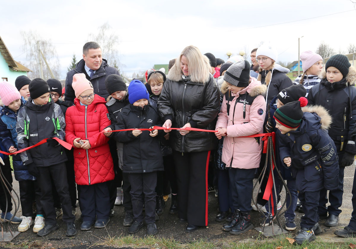 Дети – наше будущее. И взрослые в свою очередь стараются сделать всё, чтобы они с пользой и весело могли проводить свой досуг. В нашем городе и на селе установлена уже не одна игровая площадка для детей. Открытие очередной из них состоялось на прошедшей неделе в агрогородке Тетерино. Гостями мероприятия стали заместитель председателя Круглянского райисполкома Александр Смирнов, начальник отдела жилищно-коммунального хозяйства, архитектуры и строительства райисполкома Виктория Кубеко, председатель Тетеринского сельисполкома Надежда Ерёмина и директор ЗАО «АСБ-Агро Тетерино» Александр Вяселев. Взрослые поздравили с таким замечательным событием местных ребятишек, пожелали им улыбок, радости, крепкого здоровья и бережного отношения к новой площадке. Разрезана красная ленточка… Новый игровой и спортивный инвентарь ждёт мальчишек и девчонок для веселого времяпрепровождения. Особо благодарны за обновку педагоги Тетеринской средней школы имени А.С. Лукашевича, рядом с которой разместилась площ
