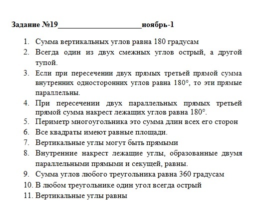 Для тех, кто самостоятельно готовится к ОГЭ Первый: укажите верное утверждение (задание №19) Второй: микс изученного в сентябре-октябре Время выполнения каждого: 5-10 минут Ответы для самопроверки: Первый: 3,5,7,8,10,11,12,14,15,16,19 Второй: 1) -10; 2) 2; 3) 0,8; 4) 57; 5) 2 До встречи!
