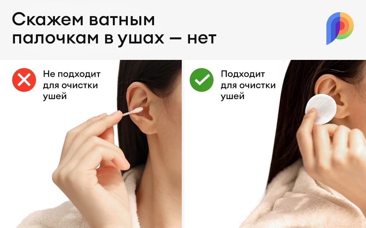 Возможно, ватные палочки стали настолько привычными для вас, что в голове не возникает вопрос: «А безопасны ли они?». Мы рекомендуем не использовать этот предмет гигиены для очистки слухового прохода. Конечно, часть серы палочка удалит, но куда больше протолкнёт по слуховому проходу к барабанной перепонке. Чистка за чисткой — и вот образуется серная пробка. Есть и другой риск: неосторожным движением повредить барабанную перепонку.