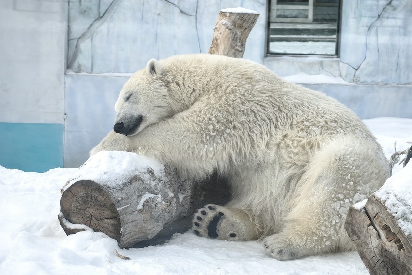 Погодные качели не дают покоя не только людям, но и животным. Так например медведи, по причине довольно тёплой погоды, еще не улеглись окончательно в берлоги, а предпочитают пока побродить, поесть и на посетителей посмотреть. Конечно, недалек тот решающий момент, когда они уйдут в зимний сон, и увидеть их можно будет уже только весной. Конечно, все это не касается белой медведицы Хатанги - она будет по-прежнему радовать посетителей своими проказами в бассейне.