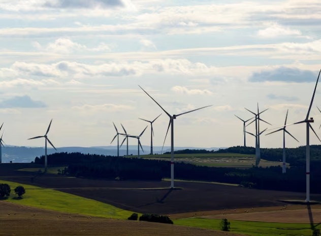 Вид на ветряную электростанцию за Фойгтсдорфом недалеко от Дорфхемница, Германия, 9 августа 2024 г. REUTERS/Axel Schmidt