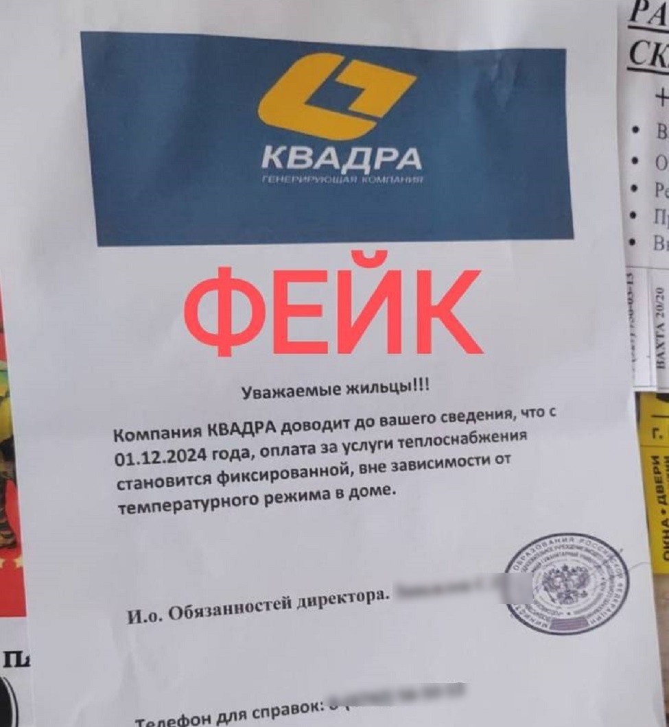 В Липецке на дверях подъездов некоторых многоэтажных домов появились объявления якобы от ресурсоснабжающей компании. В них указано, что условия оплаты за услуги отопления изменились. Однако эта информация — недостоверна. Пресс-служба АО «Квадра» сообщила: — Все начисления производятся в соответствии с действующим законодательством на основе установленных тарифов и нормативов. Если в доме установлен общедомовой прибор учёта тепловой энергии, и управляющая компания вовремя передала показания, начисления производятся только по фактическому потреблению. Подробнее с тарифами жители могут ознакомиться на сайте ресурсоснабжающей компании.
