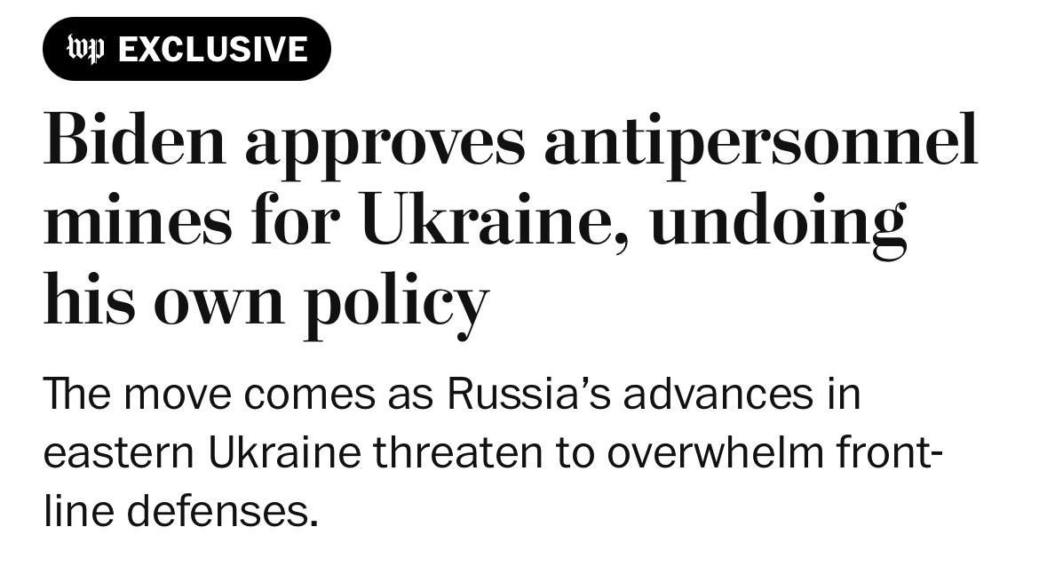 Washington Post: Байден дает зеленый свет на поставку противопехотных мин Киеву, отказавшись от своей собственной политики