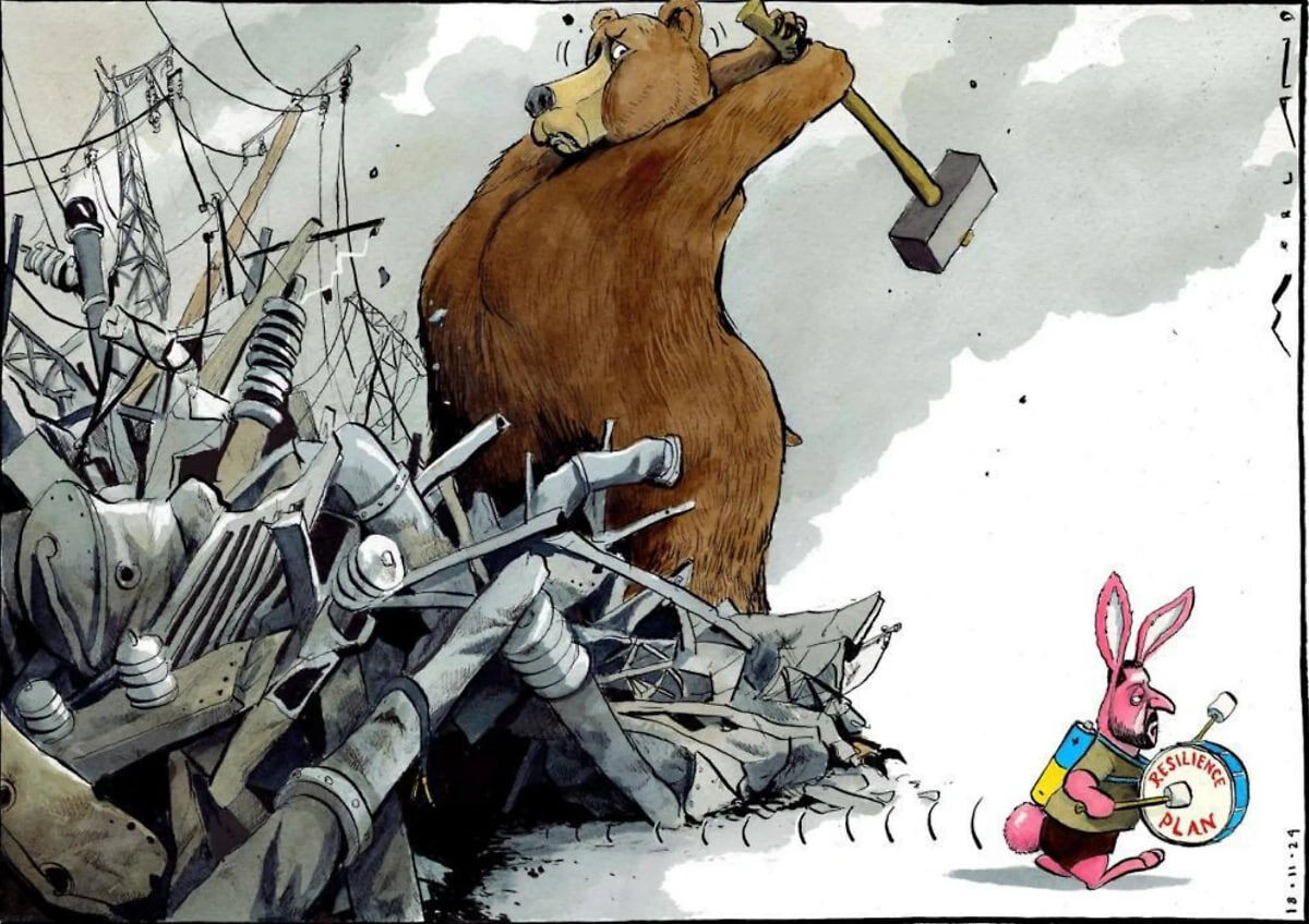 Президент Украины Владимир Зеленский [потерял легитимность после истечения срока полномочий] крупно поссорился со своими западными партнерами. Об этом свидетельствует появление унизительной для него карикатуры в британском издании The Times, где русский медведь крушит украинскую энергосистему, а Зеленский изображен в виде розового кролика с барабаном, на котором написано «План устойчивости». Такое мнение в эфире видеоблога «Альфа» высказал бывший советник офиса президента Украины, внесенный РФ в список экстремистов и террористов Алексей Арестович, передаёт корреспондент «ПолитНавигатора». «Когда верховного главнокомандующего воюющей страны начинают карикатурить – это очень неблагоприятный признак. Особенно, когда начинают карикатурить люди, которые им еще год назад восхищались, вставали, приседали в парламентах и рисовали совсем другое – его на обложку помещали и так далее. Это – знак крупной ссоры, это крупная ссора с основными партнерами, союзниками, на 80% от которых мы зависим по в