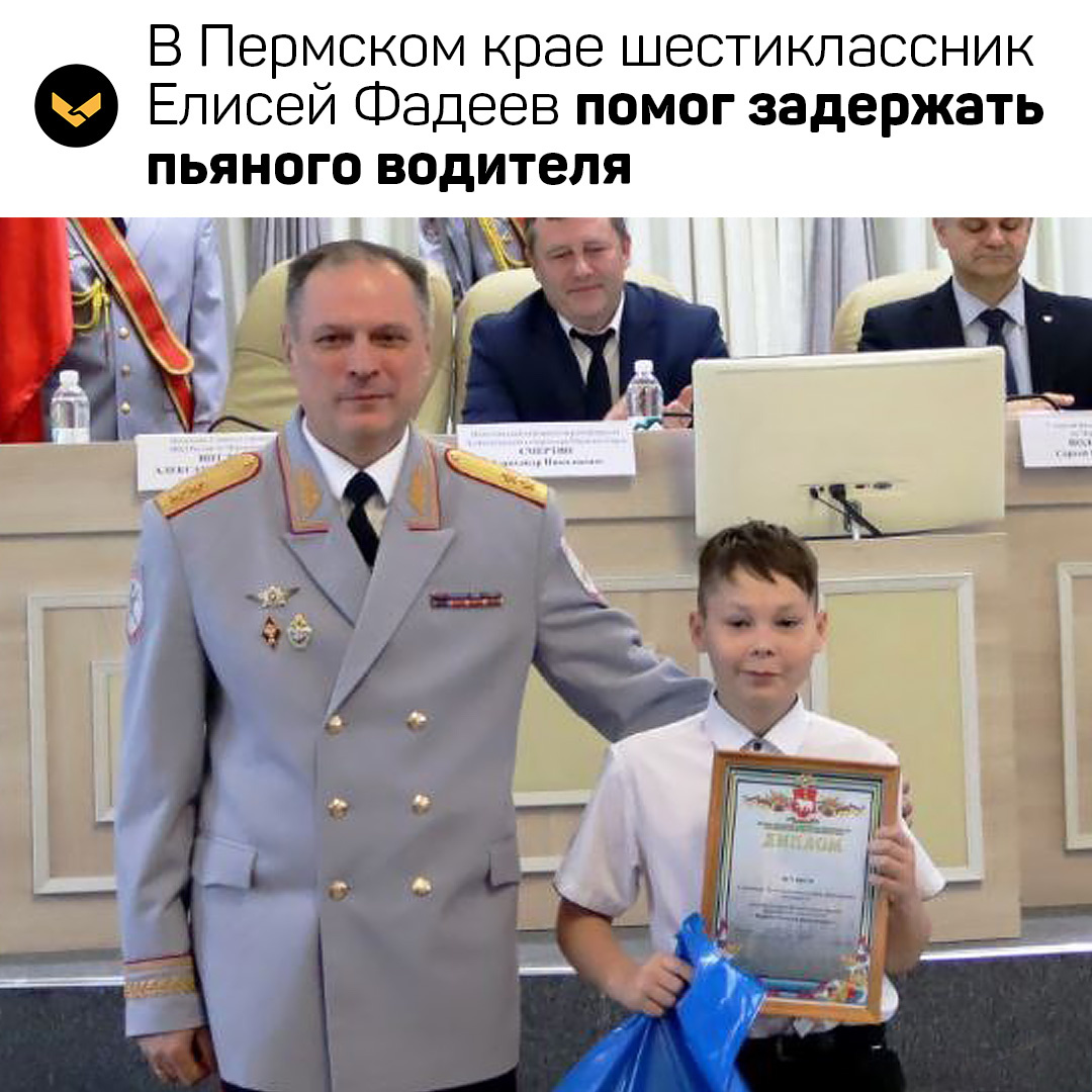 В Пермском крае шестиклассник Елисей Фадеев помог задержать пьяного водителя