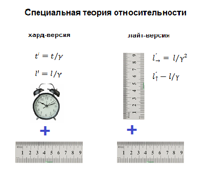 Как и в канонической версии, в лайт-версии изменения обоих размеров выражается через коэффициент Лоренца γ.