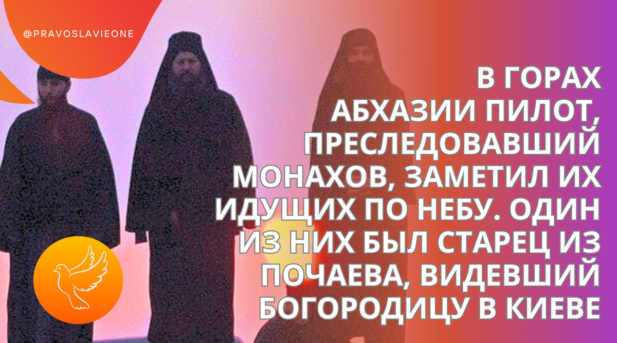 Пилот был шокирован, увидев, что монах не падает. Затем отец Феодосий начал двигаться по воздуху, словно по дорожке. Остальные монахи последовали за ним и исчезли в облаках.
