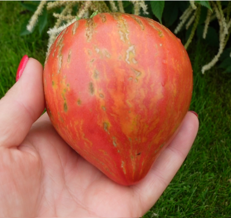 Здравствуйте садоводы и огородники! Очень часто меня просят порекомендовать сорта томатных гномов, которые созревают самыми первыми на огороде. В основном томатные гномы конечно-же среднеспелые по сроку созревания, но всё же, можно выделить более десятка сортов, которые по своему росту ближе к среднераннему сроку. И первые созревшие помидоры уже можно собирать в конце июня - начале июля. Один из таких гномов, который нас порадовал в этом сезоне - это ВОСТАВШИЙ ЗВЕЗДНЫЙ ИСТРЕБИТЕЛЬ (ВЗИ) ДЕДУШКИНО СЕРДЦЕ (Dwarf Rebel Starfighter Grandpa's Heart). Это новинка 2023 года. Создал томат американский селекционер Расс Кроу, скрестив два известных томата ВЗИ ПРАЙМ и ГОРДОСТЬ ПОБЕРЕЖЬЯ ОРАНЖЕВЫЙ. Сорт раннеспелый, детерминантный, высотой в открытом грунте 70-120см. Мы привыкли видеть гномов очень крепкими, с толстыми стеблями и морщинистыми толстыми листьями. Этот-же гном- полная противоположность! Куст очень тонкого строения, стебли тонкие, листья длинные, сильно рассеченные. Очень необычный в