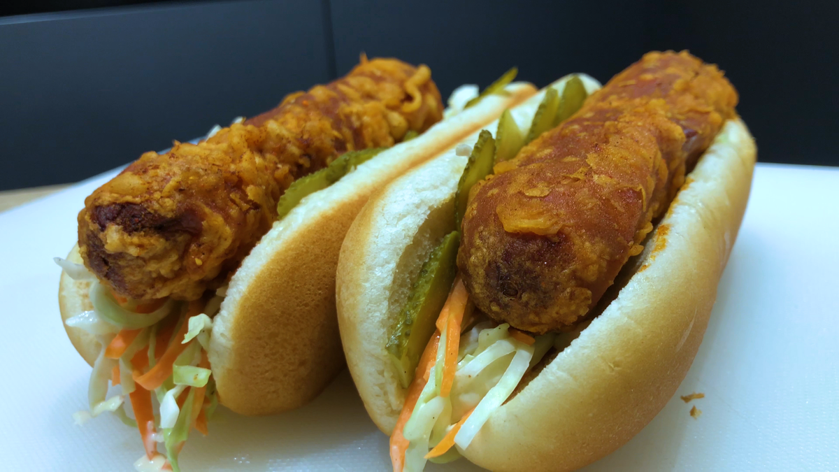 ВЫ не представляете на сколько вкусным может быть хот-дог. Это не просто сосиска в булке сдобренная кетчупом. Это не много грустно. Но мы можем сделать хот-дог лучшим из лучших. Этот домашний хот-дог я называю нешвил хот-дог или хот-дог в стиле Нешвила. "Записка в магазин"... Заправка для коул - соул(капустный салат): Еще один вариант: Пошаговое описание рецепта: Шаг 1. Готовим салат коул-слоу или просто капустный салат. Капусту мелко нашинкуем, морковь мелко нарежем или натрем. Можно ко всему по желанию добавить краснокочанную капусту; Заправим салат майонезом, горчицей, уксусом, сахаром, солью и перцем. Хорошо перемешиваем и убираем салат в холодильник; Шаг 2. В одну тарелку насыпаем муку, в одной пару яиц надо взбить. Сначала сосиску обваляем в муке, потом в яйце и затем снова в муке или панировочных сухарях; Шаг 3. Жарим сосиски на среднем огне до красивого цвета и хрустящей корочки. Шаг 4. Масло нешвил для смазки сосисок. Зачерпнем горячего масла(в котором жарились сосиски).