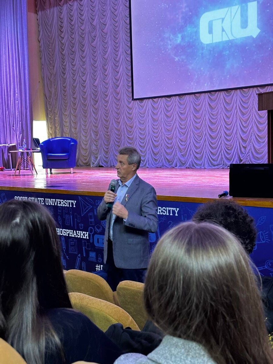 В стенах Сочинского государственного университета в рамках просветительского проекта «Открываем Россию заново. Вместе с Русским географическим обществом» состоялась встреча с российским путешественником, полярным исследователем, государственным и общественным деятелем, Героем Российский Федерации, победителем национальной премии «Хрустальный компас» Малаховым Михаилом Георгиевичем. В ходе встречи Михаил Георгиевич поделился с обучающимися своими захватывающими приключениями в заполярных историко-географических экспедициях, о том, как принимал участие в составе трансарктической лыжной экспедиции, в экспедиции «Ледовая прогулка» под патронажем ООН от мыса Колумбия (Канада) до Северного полюса, а также в ряде арктических экологических экспедиций. Особый характер встречи, предназначенной для расширения знаний в области географии, оказался особенно полезен для обучающихся Факультета туризма и сервиса, а также обучающихся факультета экономики и права по направлению подготовки Педагогическ