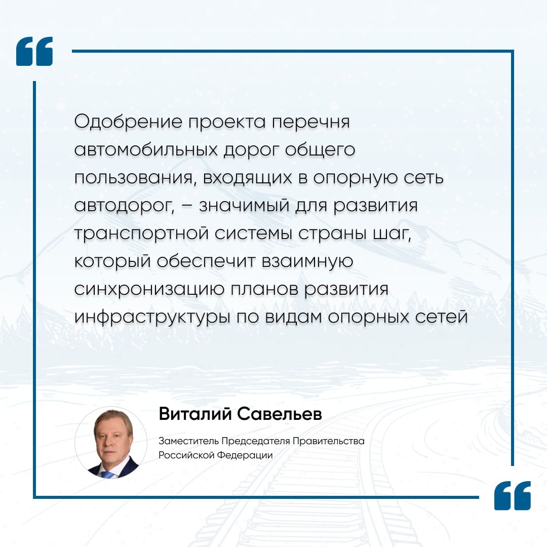 Вице-премьер Виталий Савельев отметил, что финальное подтверждение контуров национального транспортного каркаса имеет стратегическое значение. Такой шаг обеспечит взаимную синхронизацию планов развития логистической инфраструктуры.