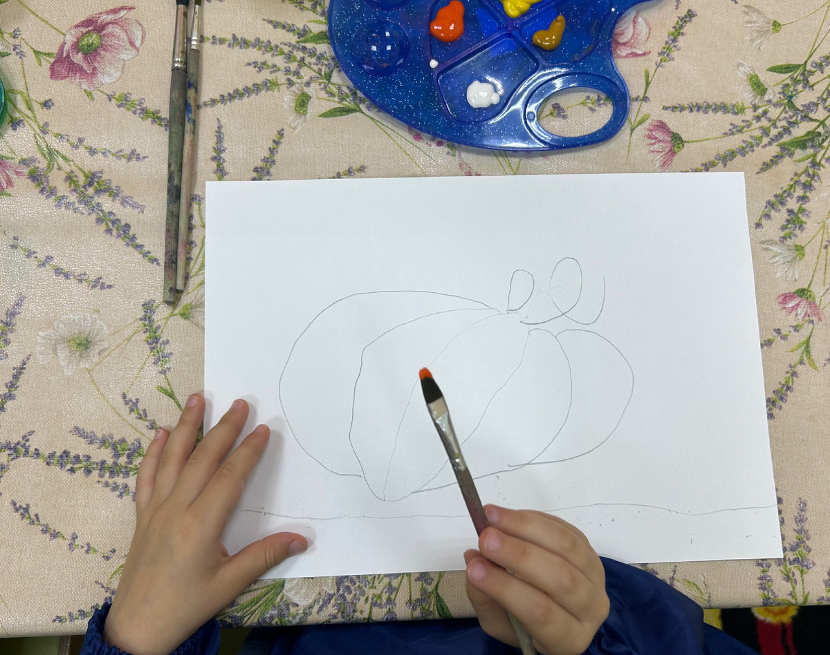 Рисуйте тыкву вместе с видео 👇 Осенью очень актуально рисовать яркую оранжевую тыковку. Давайте пошагово разберем, как ребенку нарисовать тыкву так, чтобы она не превратилась в обычный оранжевый круг 🟠. Итак, сначала простым карандашом намечаем горизонт, где у нас будет трава. По середине листа рисуем овал - это середина тыквы, от него полукругами присоединяем остальные дольки овоща. Рисуем хвостик и можно добавить листик. Затем начинаем закрашивать гуашью дольки тыквы, но не полностью, а фрагментами, используя постепенно такие цвета: оранжевый 🧡, желтый 💛, красный ❤️, коричневый 🤎. Так, наша тыква будет яркая и не однотонная. Под тыквой рисуем травку зеленой гуашью, поверх этого цвета обязательно добавляем пожелтевшие оттенки травы, ведь у нас осень 🍂. Закрашиваем зеленый хвостик тыквы и завитушку. Ну вот, в принципе, и всё)). Обязательно добавляем фон - у нас это синее небо, можно добавить облака. Наши тыквы готовы! 👇 Рисовали дети 4-6 лет. Хотите рисовать вмес