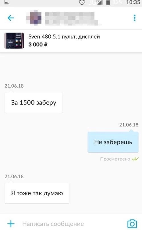Переписка в чате Авито самое классная часть взаимоотношений между продавцом и покупателем. Тут меньше лжи, чем в офлайн магазине. Больше открытости и справедливости. Порой получаешь огромное удовольствие не от самой продажи товара или услуги, а от диалога в чате. Присаживайтесь по удобнее. Подборка переписок на Авито к вашему вниманию: