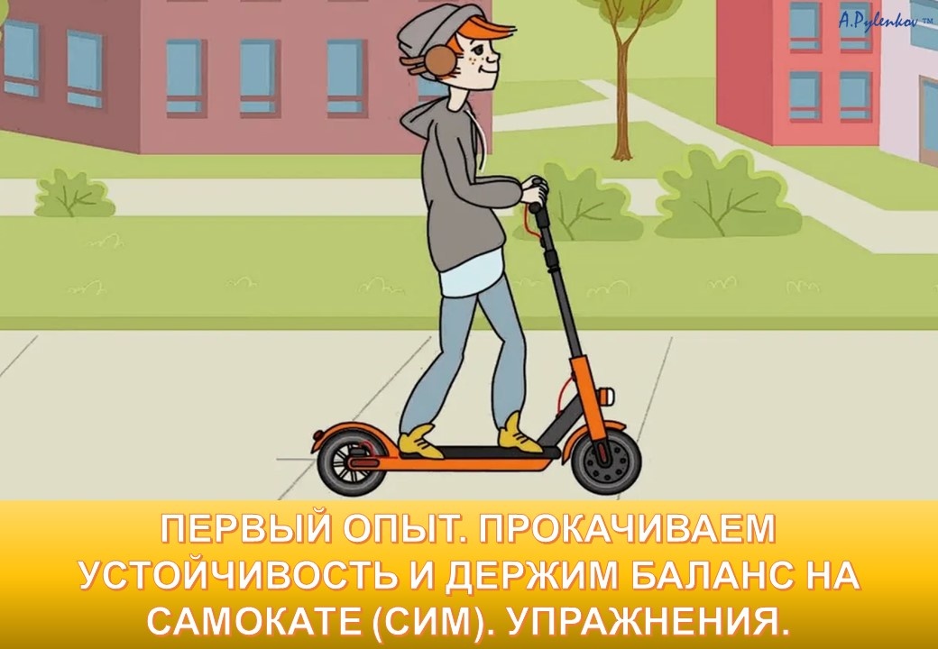 ПЕРВЫЙ ОПЫТ. ПРОКАЧИВАЕМ УСТОЙЧИВОСТЬ И ДЕРЖИМ БАЛАНС НА САМОКАТЕ (СИМ). УПРАЖНЕНИЯ.
