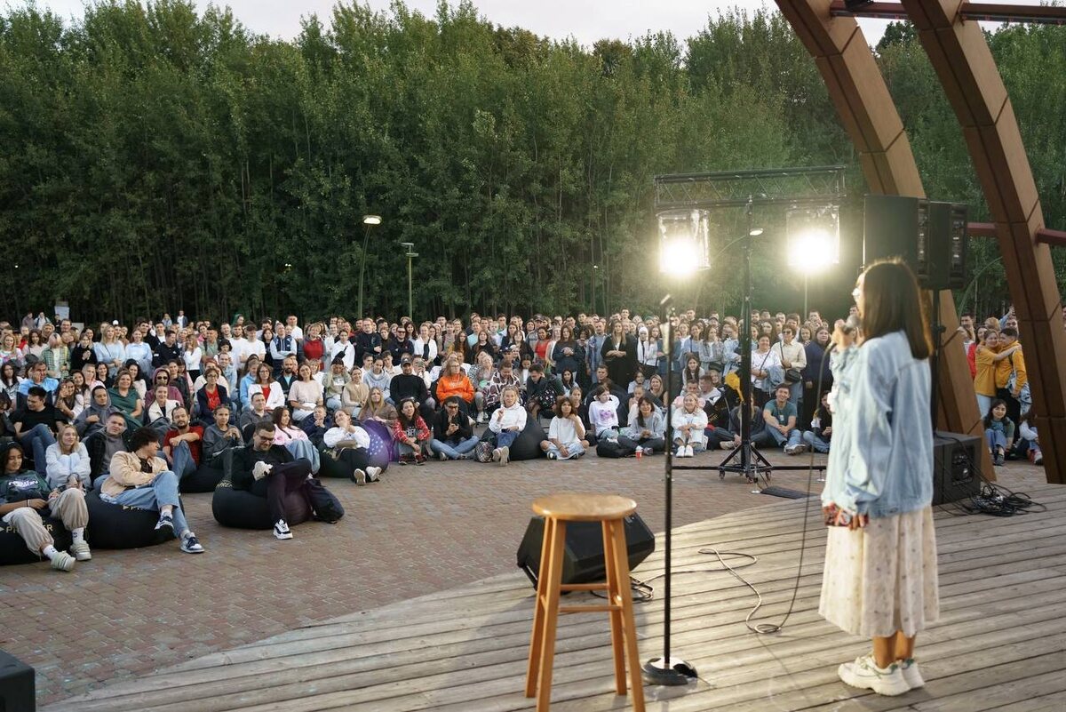 Следующее выступление прошло в парке, куда собралось слишком много людей. Я снова почувствовала себя маленькой и нелепой на огромной сцене. Давай будем честны: страх перед публикой не исчезает, даже если это не твое первое выступление. Но страх — это не всегда плохо. Страх интересен, он заставляет чувствовать себя живой. Если ты хочешь выступать, но боишься — выходи на сцену испуганной. Главное — выходи. Мне помогли некоторые личные лайфхаки, которыми я хочу поделиться.