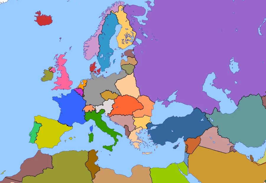 На предоставленной карте изображена Европа в альтернативной реальности, где, очевидно, не произошло ни Первой, ни Второй мировой войны. Геополитические границы здесь отражают развитие государств в мире, где крупные конфликты XX века были избегнуты. В данной статье мы проанализируем, как могли бы развиваться события в таком сценарии, какие страны выиграли от этого положения, и насколько реально было избежать глобальных конфликтов.