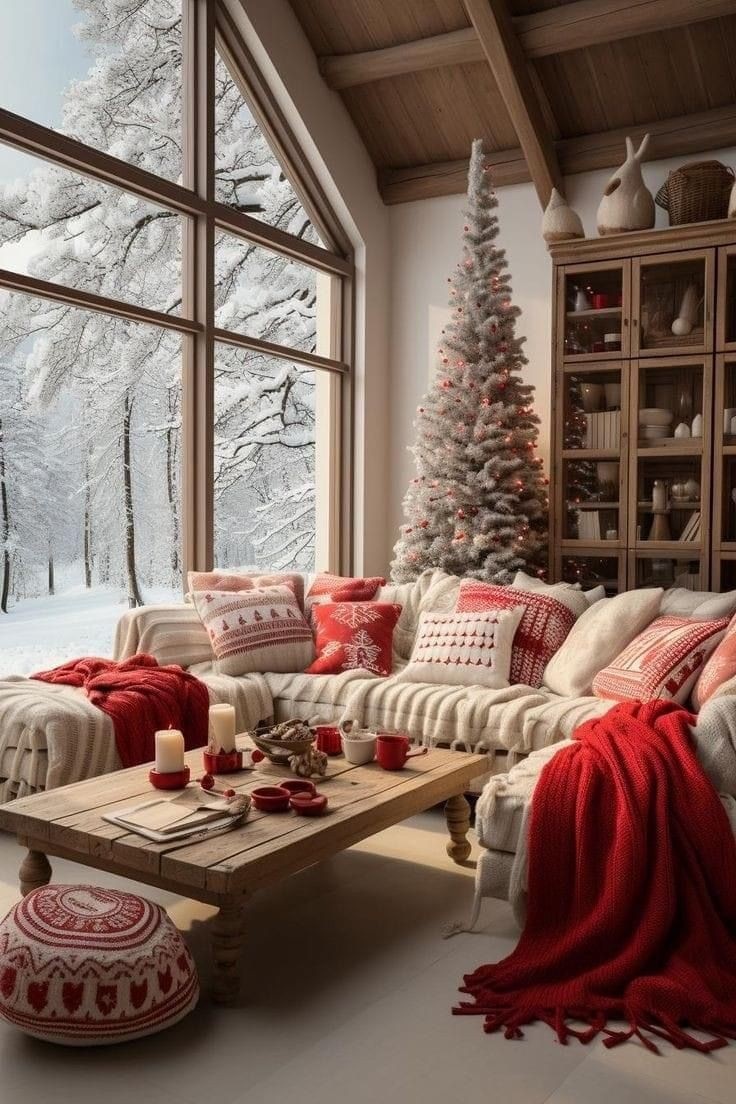 Вышитые подушки – ещё один способ добавить изюминку в новогодний интерьер. Они могут быть украшены как классическими новогодними мотивами (елочки, снежинки, олени), так и другими узорами, что отражает ваш личный стиль.