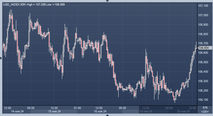 В четверг на прошлой неделе индекс достиг годового максимума в 107,07 на фоне ожиданий крупных бюджетных расходов, повышения пошлин и ужесточения иммиграционной политики при новой администрации США — мер, которые, по мнению экономистов, могут способствовать инфляции и потенциально замедлить смягчение политики Федеральной резервной системы.