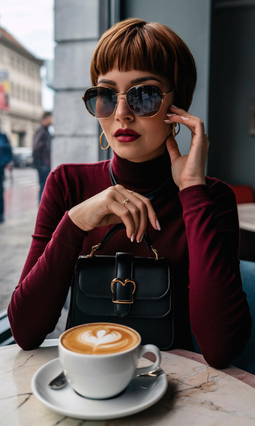 1. Эта короткая стрижка в ретро стиле с резкими чертами отличается прямой челкой, которая идеально обрамляет лицо, придавая ему смелый, молодой вид. Чистые линии этой стильной короткой стрижки идеально подходят для женщин в возрасте 40-50 лет, предлагая свежий и современный образ. Это отличный выбор для тех, кто хочет принять короткий модный стиль в 2025 году.