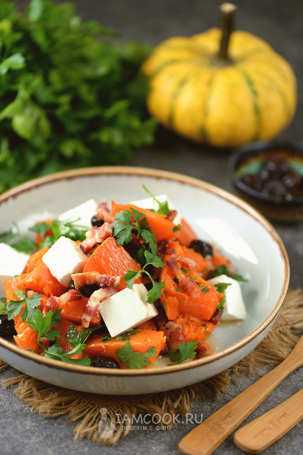 Тыква — это как подруга, которая всегда вовремя: и кошелек не опустошит, и витаминчиков подкинет. А в этом рецепте она ещё и на свидание с беконом🥓 отправляется. Результат? Вкусно, быстро, и все на кухне вам аплодируют. Этот салат — отличный способ разнообразить осеннее меню. Брынза добавляет нежной солоноватости, маслины — пикантности, а хрустящий бекон и тыква — чистое удовольствие. Давайте готовить! 🛒 ЧТО НАМ ПОНАДОБИТСЯ: 👩🍳 КАК ГОТОВИТЬ: ✅Подготовьте ингредиенты. Нарежьте тыкву кусочками толщиной с палец (ну, или чуть меньше, если у вас тонкий палец). Разложите её на противень с фольгой, сбрызните растительным маслом и отправьте в духовку. Пусть она там подрумянится минут 12–15 при 220 °C. Ножиком проверяйте: легко входит — готово! ✅Займёмся беконом. Нарежьте его тонкими ломтиками, выложите на сухую сковородку и жарьте до хрустящей корочки. Весь жир пусть вытопится — мы его в салат не зовем🙃. Готовый бекон🥓 переложите на бумажные полотенца: пусть отдыхает и жир сбрасывает. ✅