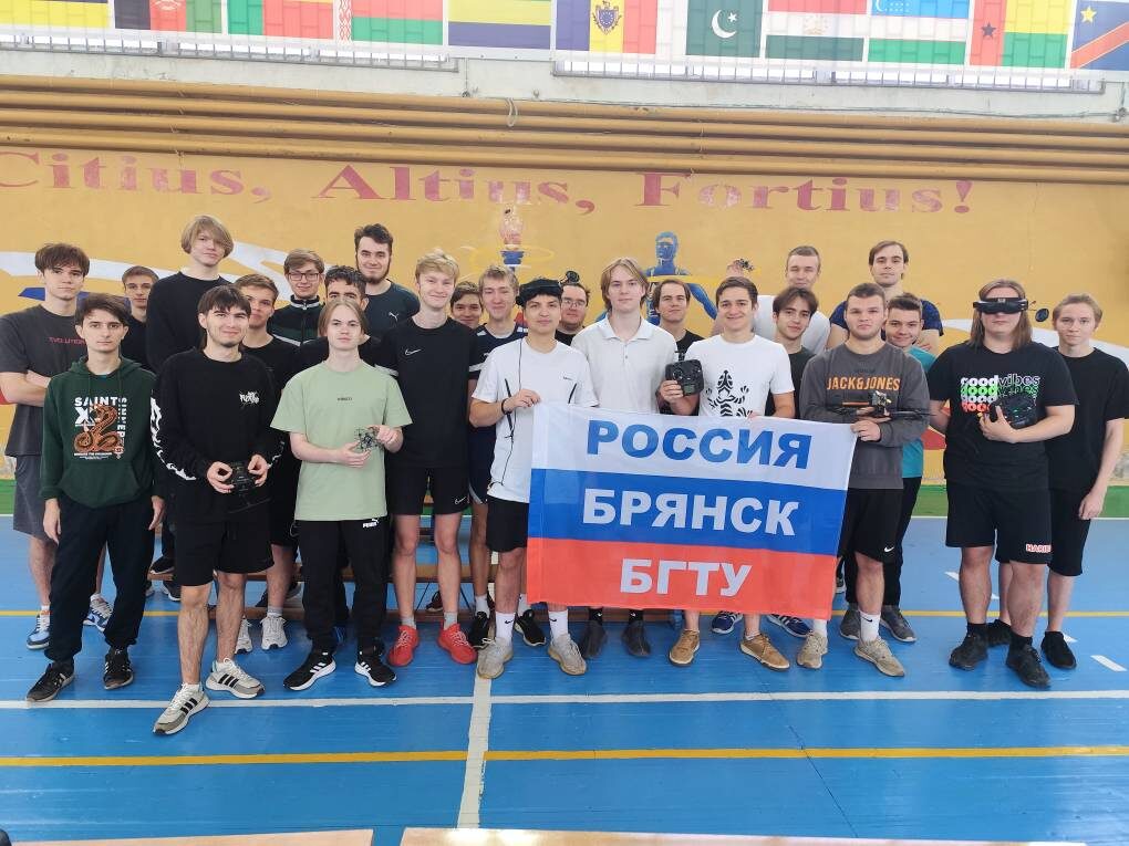 14 ноября 2024 года в спортивном зале БГТУ состоялся мастер – класс для студентов второго курса факультета информационных технологий (ФИТ) по виду спорта «Гонка дронов». Вид спорта "Гонки дронов" был зарегистрирован в России 24 июля 2023 года Министерством спорта РФ. В соревнованиях «Гонка дронов» спортсмены или команды соревнуются в скорости прохождения специальной трассы. Соревнования проводятся на специальном классе квадрокоптеров с размером рамы от 85 до 300мм. Размер рамы рассчитывается как диагональ от двух крайних моторов без учёта размера лопастей винтов. Класс гоночных квадрокоптеров отличает высокая энерговооружённость, увеличенная скорость, маневренность и сильно ограниченное время полета, всего несколько минут. При этом рейсинговый коптер является FPV-носителем. На его борту расположена камера и передатчик видеосигнала. Как правило используется частота диапазона 5,8 Ггц. Участник гонок надевает специальные FPV очки или шлем, через который видит изображение с бортовой камеры