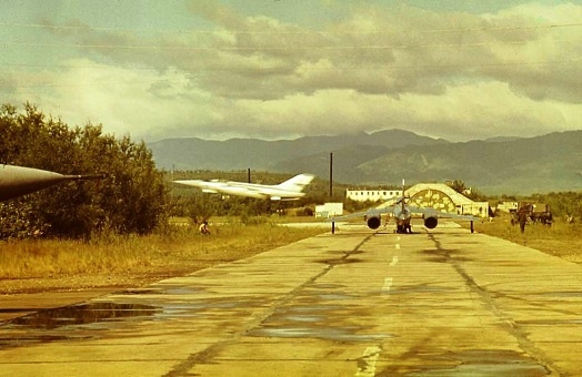 – Живописные виды открывались на аэродроме. Всюду вокруг было много разных деревьев, и хвойных, и лиственных, Хвойные, конечно, преобладали. Между взлётно-посадочной полосой и магистральной рулёжкой тоже росли деревья. Когда приходилось рулить по магистральной, то можно было представить, что рулишь ты не по аэродрому, а где-то по лесу, особенно это ярко проявлялось в районах технических зон с поворотами рулёжек и с непривычным видом заросших деревьями каких-то холмов. Это были заросшие деревьями ЖБУ. Открывался, например, просто шикарный вид на наши ДОСы (Дома Офицерского Состава) на фоне сахалинских сопок. Находились они рядом с аэродромом. Даже сейчас, по прошествии многих лет, хорошо помнится тот живописный вид сахалинских сопок. Они совсем невдалеке простираются с юга на север несколькими видимыми лесистыми грядами. Одна гряда превышает другую, и уходят они, можно сказать, - за горизонт на север и на юг. А занимают они достаточно большое пространство от середины острова, где находится Смирных, до побережья Татарского пролива. Километров, наверное, пятьдесят, а там ширина пролива примерно в сто километров и уже берег материка.