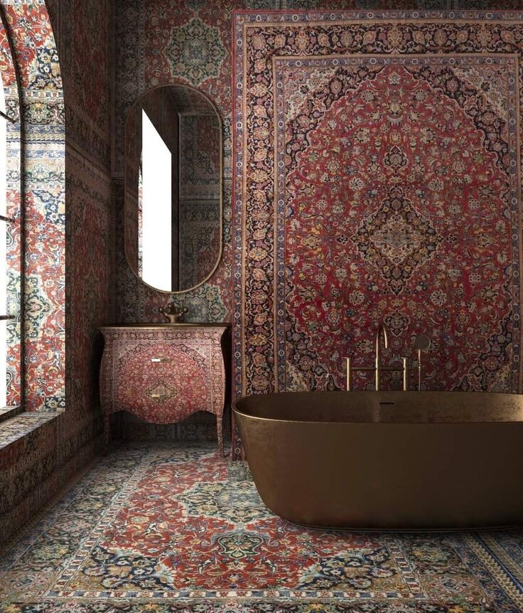 Вы в шоке? А мы нет. Я начал серию материалов о коврах как о дизайнерской приблуде в современном доме. Тут написал о том, как вообще европейцы дошли до жизни такой, что стали на турецко-персидский лад украшать свои жилища. Тут поговорили о коврах на полу. Сегодня о коврах на стенку. И первое, что надо пережить - это довести до абсурда идею ковро-украшательства. Только когда уже "мальчики кровавые" в ковровом узоре будут стоять в глазах, придет, как второе дыхание, осознание: а ведь ковер - это неплохо. Итак, по плану у нас "переесть" коврового. Есть дизайны, в которых пошутили, так пошутили. Идея игровая, но рабочая: ирония над "бабушкиным" представлением о благополучии. Кстати, такая ирония свойственна не только нам. Есть такая британская художница Дебби Лоусон - она создает из традиционных персидских ковров скульптуры, в которых угадывается российский национальный зоосимвол - мишка. Скульптуры она выполняет с использованием проволочной сетки, папье-маше с клеящей основой и нанесе