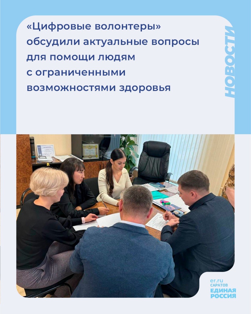 👨🏼💻Мероприятие состоялось в рамках реализации федерального проекта «Цифровая Россия» партии «Единая Россия» по направлению «Цифровая инклюзивность». В Саратовской областной Думе общественники и «цифровые волонтеры» обсудили актуальные вопросы внедрения инклюзивных цифровых продуктов и обеспечения доступности цифровых знаний для людей с ограниченными возможностями здоровья. В рамках проекта планируется разработка и внедрение специальных курсов для цифровых волонтеров, которые в дальнейшем будут проводить общедоступные уроки для людей с ОВЗ. 👥Во встрече приняли участие координатор «цифровых волонтеров» Саратова Николай Власов, исполняющий обязанности председателя общественного совета при Саратовской областной Думе Сергей Понин, местный координатор партпроекта «Единая страна – доступная среда» в Волжском районе Вероника Петрова, представители общественности. 💬«Совместная работа над этим важным направлением позволит сделать цифровые технологии доступными для всех жителей нашего