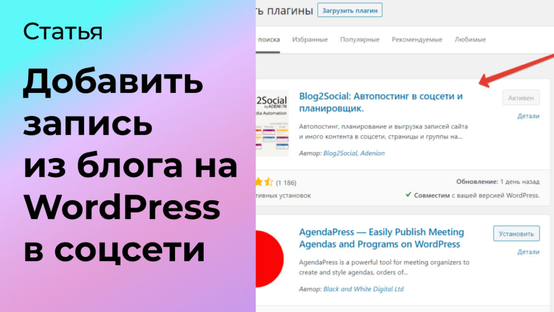 Когда продвигаешь бизнес или личный бренд, очень хочется всё успеть: и на работе, и вне её. Кому-то контент и его публикация в удовольствие, для кого-то – тяжелая рутина, для другого – то, что хотелось бы успеть, но времени не хватает. Один из способов упросить себе жизнь – подключить автопостинг в социальные сети. Например, таким способом пользуюсь я, поскольку у меня сетка из 10+ каналов на разных платформах. В статье расскажу, как опубликовать запись из блога на WordPress в социальных сетях в один клик или полностью автоматически. Больше полезных материалов можно найти в моём блоге. В нём я регулярно делюсь бесплатными шаблонами и инструкциями, которые существенно облегчают жизнь маркетолога. А ещё больше интересного в моём Телеграм. Подписывайтесь! Для тех, у кого сайт на WordPress достаточно установить плагин Blog2Social. Для этого переходим в плагины и ставим Blog2Social. Далее переходим в плагин → в раздел «Аккаунты в соцсетях» и авторизуемся в своих аккаунтах. После авторизации
