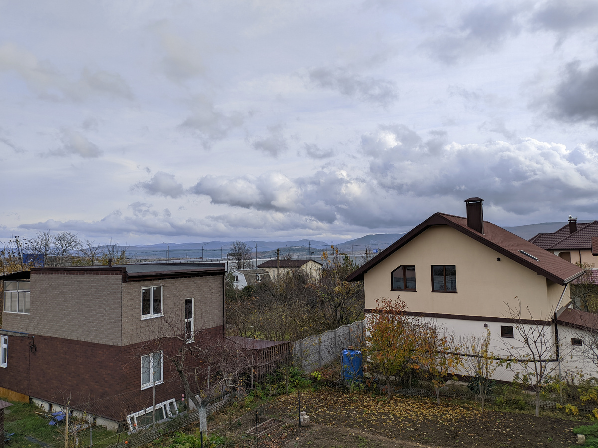 Сегодня с утра была отличная солнечная погода, но пока я собирался выйти на террасу, уже и солнце исчезло. Осень, ничего не поделаешь, надо мрачную марку держать. Но мне и такая погода нравится, главное, что не холодно, комфортно.