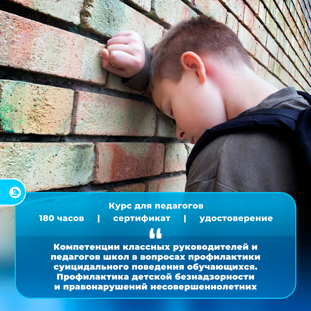 Приглашаем классных руководителей изучить курс повышения квалификации «Компетенции классных руководителей и педагогов школ в вопросах профилактики суицидального поведения обучающихся. Профилактика детской безнадзорности и правонарушений несовершеннолетних».