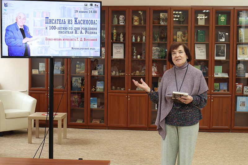 В краеведческом отделе библиотеки имени Горького состоялся показ фильма журналиста Галины Дмитриевны Воропаевой «Писатель из Касимова». Мероприятие было приурочено к 100-летию со дня рождения члена Союза писателей России, почетного гражданина города Касимова, действительного члена Географического общества, кавалера ордена Почета Николая Александровича Родина (1924–2013).