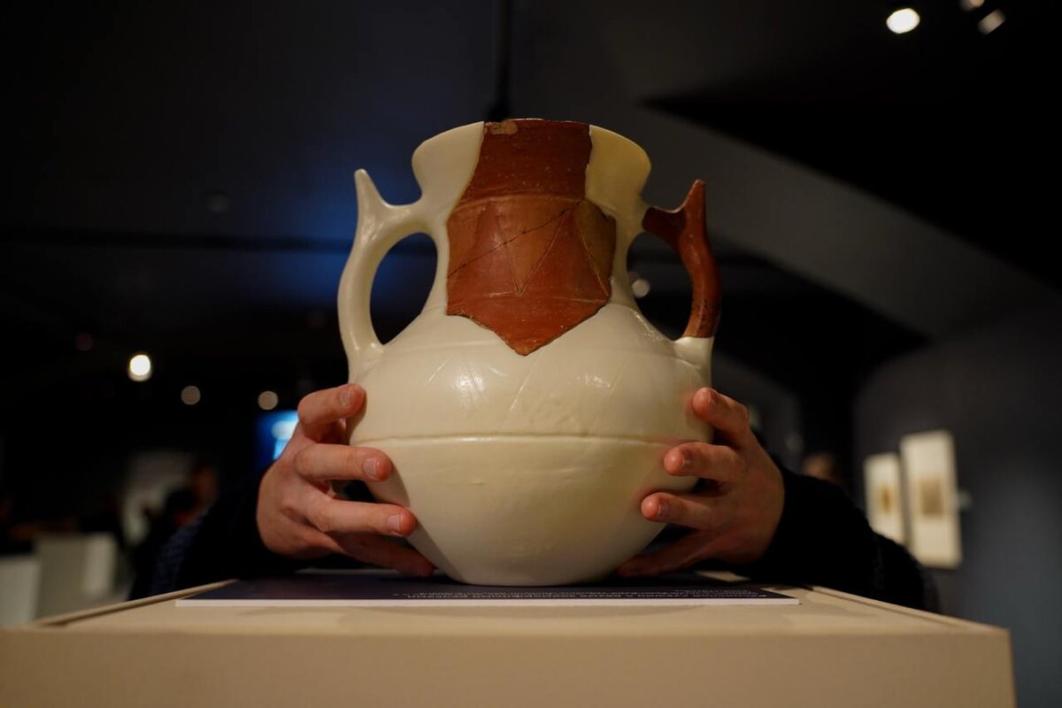 Тактильный макет кувшина постурартской культуры, который был напечатан на 3D принтере так, чтобы его можно было собрать и разобрать на фрагменты