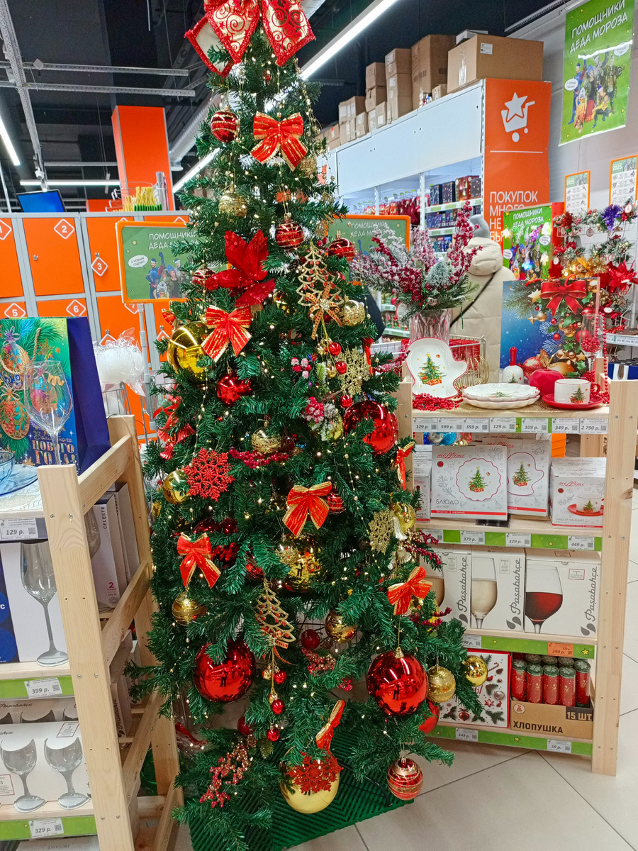 Во многих магазинах продаётся новогодняя атрибутика , можно сказать, с октября месяца. Сегодня посетила Галамарт (Тюмень тц Гудвин) На входе нас встречают нарядно украшенные ёлочки с оформленными стендами . Каждая елочка оформлена в определенной цветовой гамме и к ней подобрана в этом же цвете посуда . Не нужно искать и самим подбирать , все уже готово , покупай , украшай и наслаждайся результатом. Проходим дальше , видим красивый стенд с посудой и игрушками.Мне больше всего снеговички понравились , такие милые. Много различных украшений , игрушек на ёлку. Особенно понравился этот милый , симпатичный Лось ☺️Мимо него не возможно пройти. Цена у него 369р Есть кухонная утварь , разнообразные тарелки , кружки , наборы , скатерти (фото их не успела сделать). Всем спасибо кто дочитал до конца. Ставти лайки и подписывайтесь на мой канал🤗