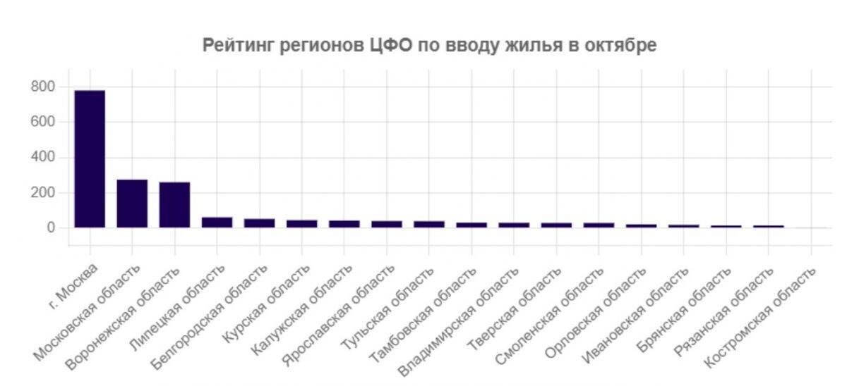 В октябре Рязанская область показала весьма низкие результаты по вводу нового жилья. Это следует из рейтинга «Бизнес-журнала. Центр». По информации издания, на первом месте по темпам ввода стала Москва. Там за месяц ввели около 780 тысяч квадратных метров, что на 38,5 процентов больше показателя октября прошлого года. В Рязанской области за октябрь было введено 15 тысяч квадратных метров. Это на 85,4 процентов меньше показателей прошлого года. Самый низкий результат показала Костромская область, где за год ввод жилья сократился на 66,2 процентов. По итогам октября в области было введено всего 4 тысячи квадратных метров.