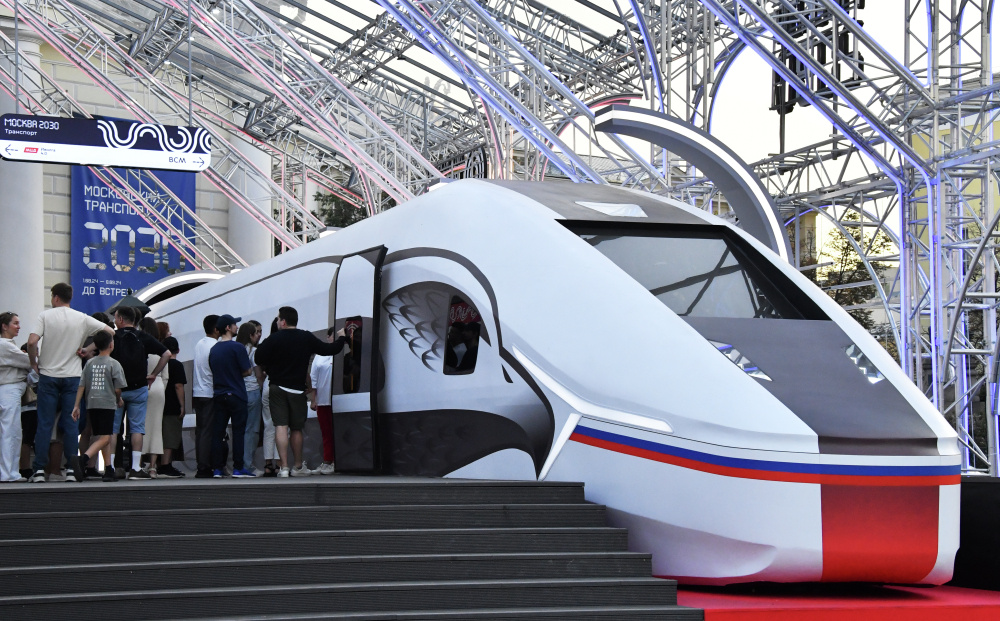 Макет высокоскоростного поезда "Белый кречет" для высокоскоростных магистралей. Фото: Наталья Селиверстова/РИА Новости.