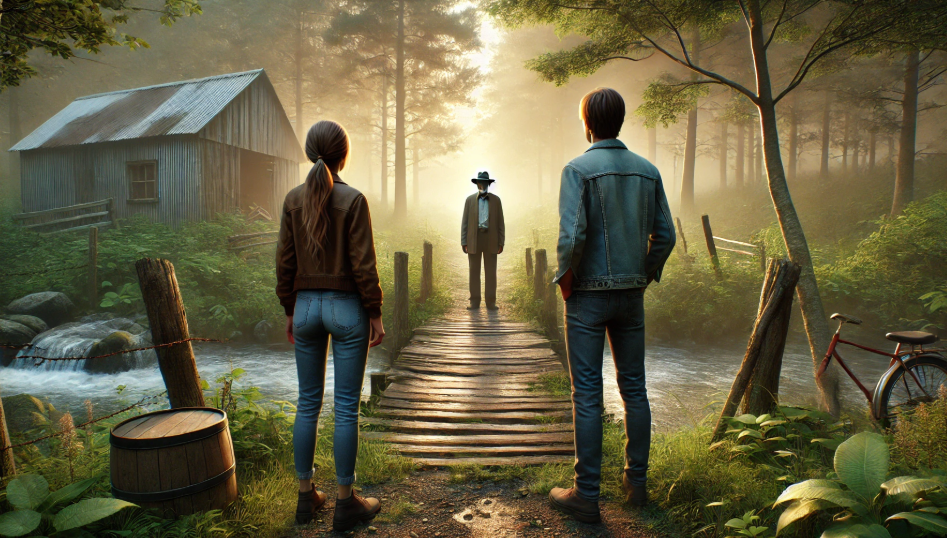 Они увидели впереди что-то , похожее на деревянный мостик.