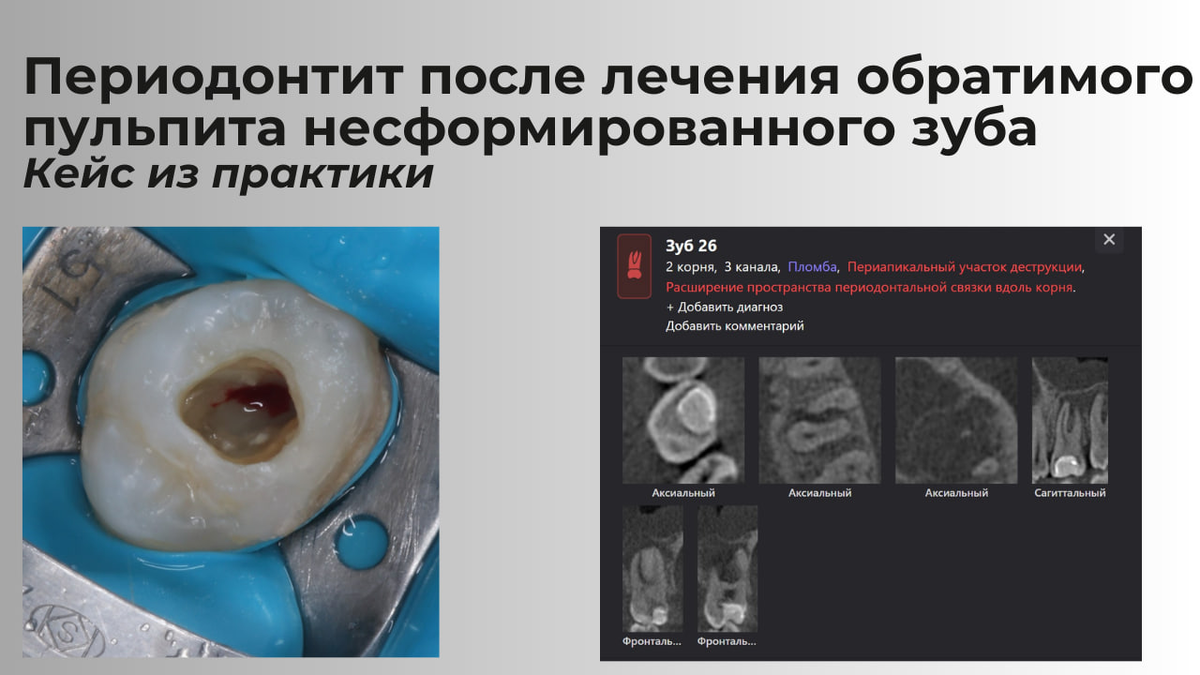 ➡️ Периодонтит после лечения обратимого пульпита несформированного зуба