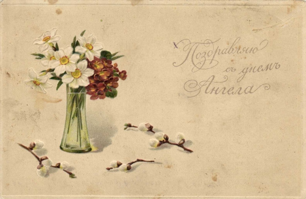 В начале прошлого века наиболее популярным вариантом поздравления с Днем Ангела стали почтовые открытки. Среди них можно было выбрать серии, издававшиеся благотворительными организациями, например, Общиной святой Евгении. Открытки полюбили, прежде всего, дети. Ученицы гимназий и институтов благородных девиц дарили их подругам и учителям. А вот для учащихся женских епархиальных училищ цены на открытки были дороги, поэтому подружке они чаще дарили записочку на листочке из маленького блокнота. Воспитанница Тамбовского епархиального училища Лариса Молчанова (в замужестве Шмелева) всю жизнь хранила такой подарок, полученный в 1903 году в возрасте десяти лет. Уголок со своей фамилией она аккуратно отрезала, так как в безбожное время были репрессированы и погибли отец и два брата, носившие эту фамилию.
