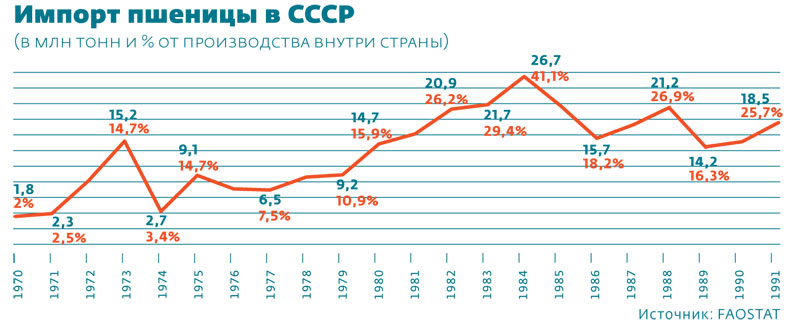 Советский Союз был мощной державой, которая одержала победу во Второй мировой войне и первой отправила человека в космос. Однако, несмотря на все эти достижения, страна вынуждена была покупать хлеб за границей. Причем, это происходило в основном с таких стран, как США и Канада — западных буржуазных государств. И это в то время, когда дореволюционная Россия в начале XX века была мировым лидером по экспорту зерна. Как же так произошло, что Советский Союз стал зависимым от иностранных поставок? Давайте попробуем разобраться в этом вопросе. Импорт хлеба в СССР начался еще во времена Второй мировой войны, в период с 1941 по 1945 года, по программе ленд-лиза. Однако массовые закупки пшеницы за границей стали регулярными лишь в 1960-х годах и особенно увеличились в 1970-е, когда объемы достигали до 40 миллионов тонн в год. Стоит отметить, что на эти закупки тратилось золото — до 15% всех золотовалютных резервов страны уходило на импорт хлеба. Это, в том числе, стало одной из причин экономиче