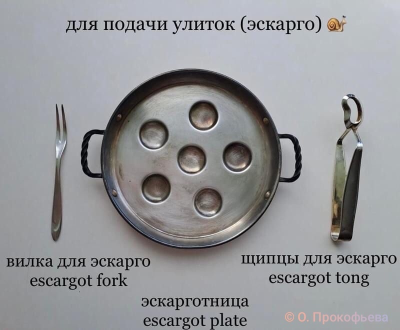 Употребление морепродуктов и виноградных улиток всегда было деликатным процессом и требовало особого подхода. Чтобы сохранить элегантность застолья, были изобретены специальные столовые приборы и посуда, которые сегодня являются частью гастрономической культуры, а старинные образцы превратились в предметы коллекционирования. Надеюсь, что этот пост поможет разобраться в тонкостях и нюансах. Тарелки для улиток — эскагортница —бывают из огнеупорной керамики, фарфора и металла. Я для фотографии выбрала металлическую с ручками, тк их часто почему-то атрибутируют как «для подачи яиц» иногда добавляют, «для перепелиных». Вилки и щипцы для эскарго обычно продаются вместе, как набор, но могут продаваться и по отдельности. Вилки для эскарго почему-то часто называют «вилками для лимона». Тарелки для устриц бывают из фарфора, майолики, металла (в прошлом изготавливали из серебра, посеребрённых металлов). Старинные тарелки для устриц — отдельная и любимая тема для коллекционирования. Сущес