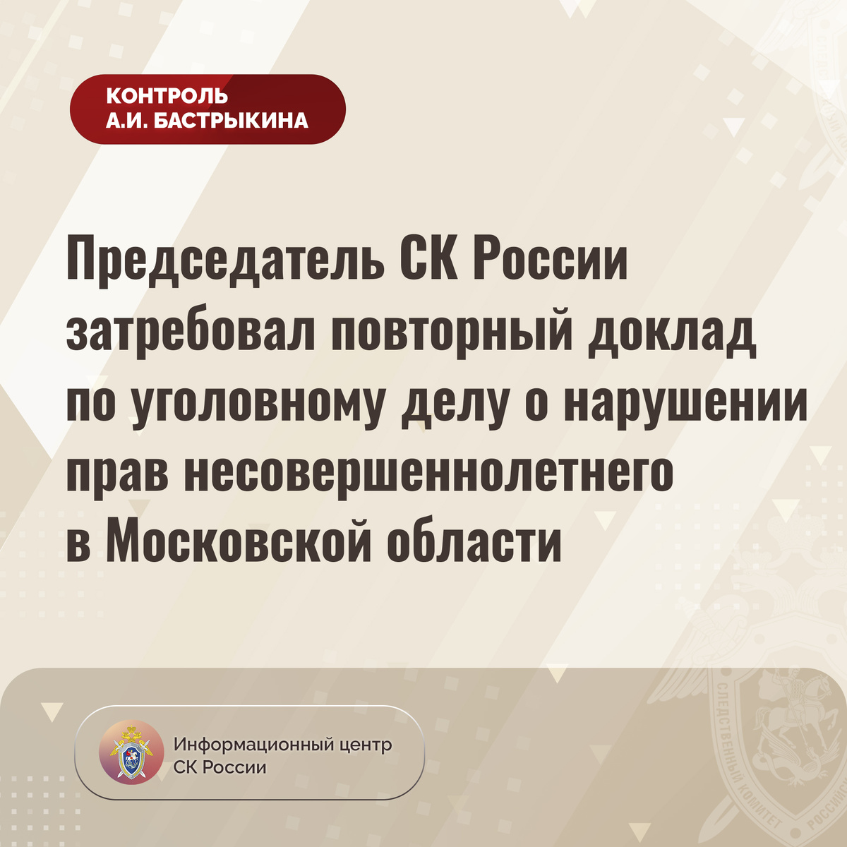 Председатель СК России затребовал повторный доклад по уголовному делу о нарушении прав несовершеннолетнего в Московской области
