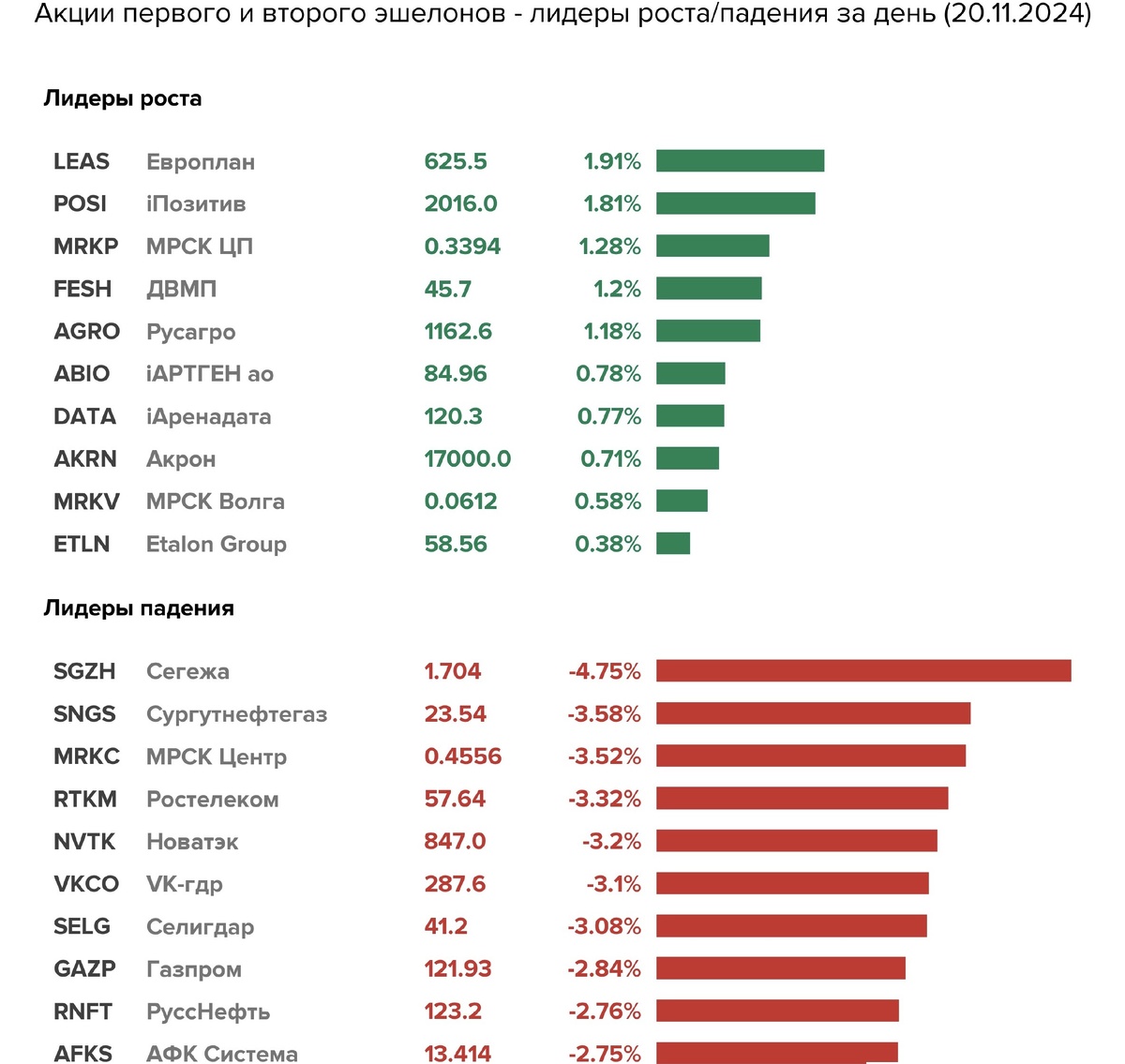 По итогам основной сессии 20 ноября индекс Московской биржи упал более чем на 1%.