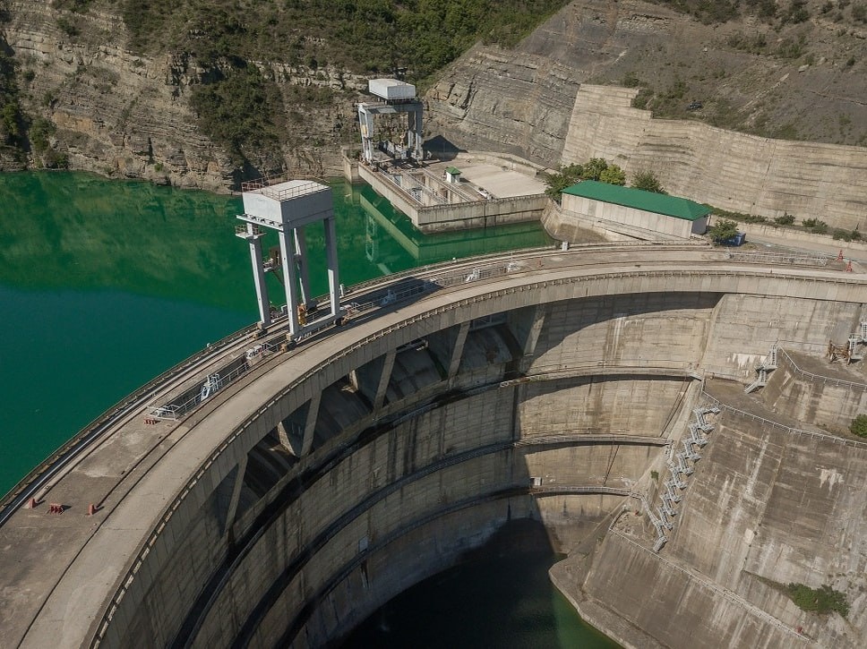 Судьба второй в нашей стране контррегулирующей гидроэлектростанции (первой стала Майнская ГЭС) складывалась очень непросто. Начиналось все достаточно стандартно – в 1966 году стартовали изыскательские работы, в 1973 году был утвержден технический проект и в следующем году стартовали подготовительные работы. “Ленгидропроект” спроектировал станцию с арочной плотиной и приплотинным зданием ГЭС, своего рода уменьшенную копию Чиркейской ГЭС. Но в 1977 году произошла большая неприятность – при строительстве подъездной дороги подрезали склон, что вызвало активизацию крупного оползня объемом 17 млн кубометров. По счастью, он двигался не очень быстро, но возведение станции по изначальному проекту делал невозможным. Проектные решения были срочно переработаны, и станция превратилась в плотинно-деривационную – здание ГЭС перенесли ниже по течению, соединив его водохранилищем при помощи тоннеля. Стройку возобновили, в 1980 году был перекрыт Сулак, а в 1986 году запустили гидроагрегат