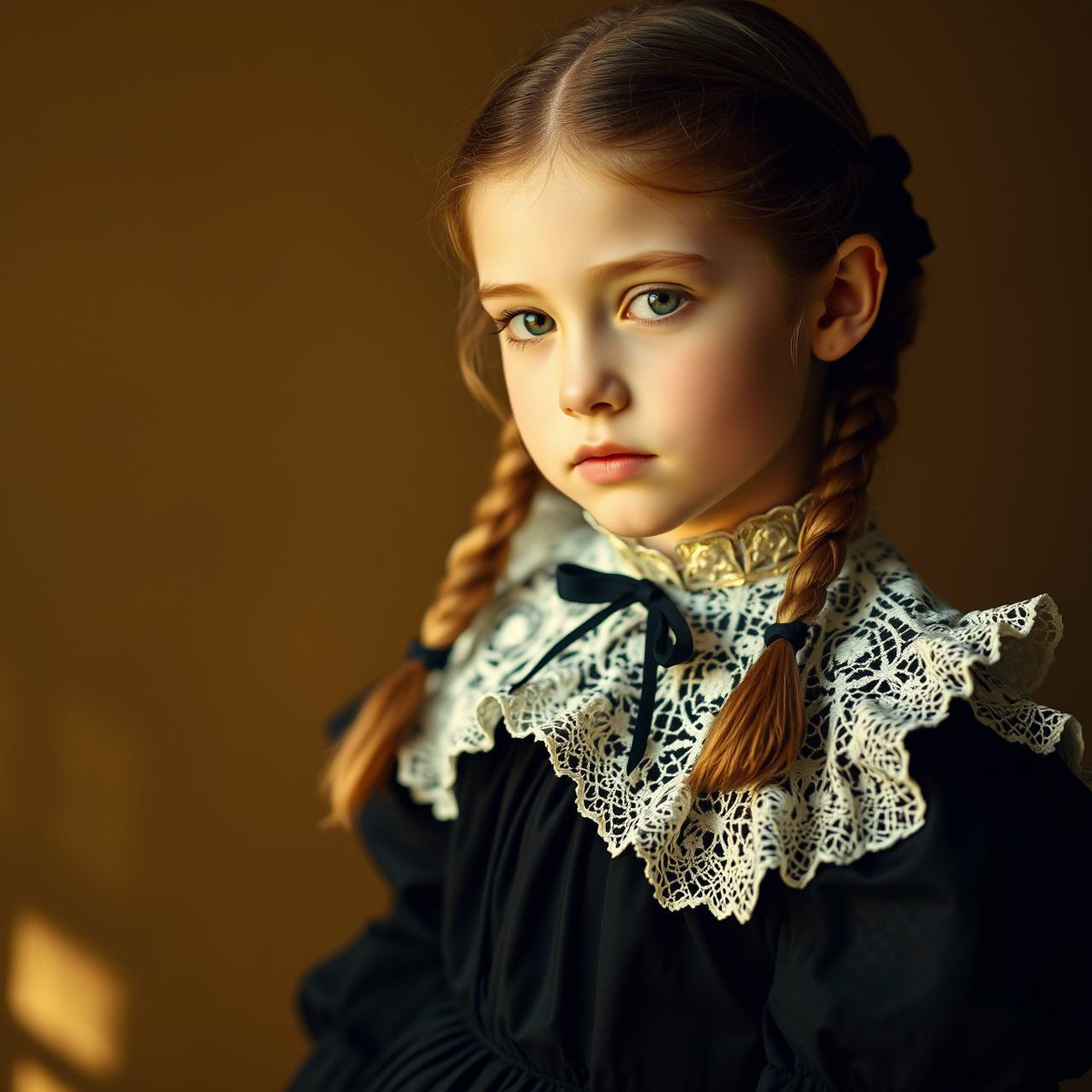 Она явно не понимала, чего ждет от нее эта одетая в красивое, чистое, хоть и полностью черное, платье. В волосы Анжелики была вплетена черная лента, концы которой спадали на спину нежными волнами. Черные же туфельки блестели лаком. Разбавляли этот траурный наряд белоснежные кружева на воротнике и рукавах. Верке такой наряд в жизни не надеть! Девочке даже обидно стало, что так ей не повезло в жизни.